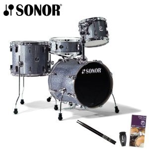 The Sonor Safari is a very portable 4-piece drum set that brings out the best in your drumming. The compact size, combined with the uncompromising commitment by Sonor to sound quality makes Safari the perfect kit for practice, rehearsals, gigs and sessions. Mic it up and watch the engineer smile. Play it live and enjoy the sound as much as the audience. Pack it up to move and your back will thank you!The Sonor Safari drums are made from select basswood and this shell set (hardware and cymbals are not included) comes in a fantastic Black Galaxy Sparkle finish. The 16x16 bass drum comes with a Riser attachment for proper lick pedal positioning and the kit also includes a 12x14 floor tom with legs, an 8x10 tom with mount and a full-sized 5x14 snare drum.Get your SONOR Safari 4-pc Drum Set today!